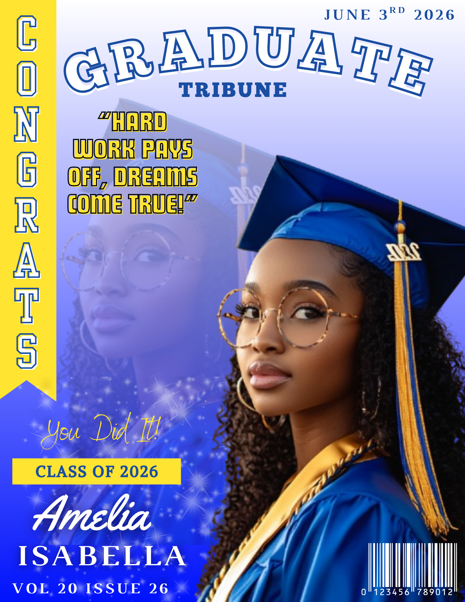 Get ready to flip through the pages of your customized Grad Magazine. The Grad Magazine keeps the celebration going long after the cap and gown come off. Grab your copy and relive the best moments of your educational adventure!