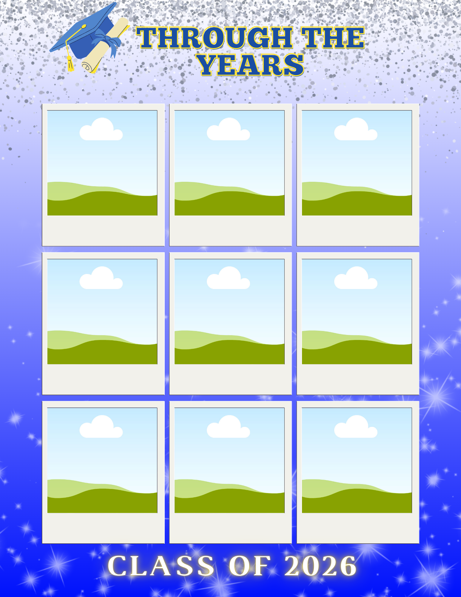 Customize by choosing your colors, adding your pictures and customizing your grad information including quotes or kind words from family and friends.