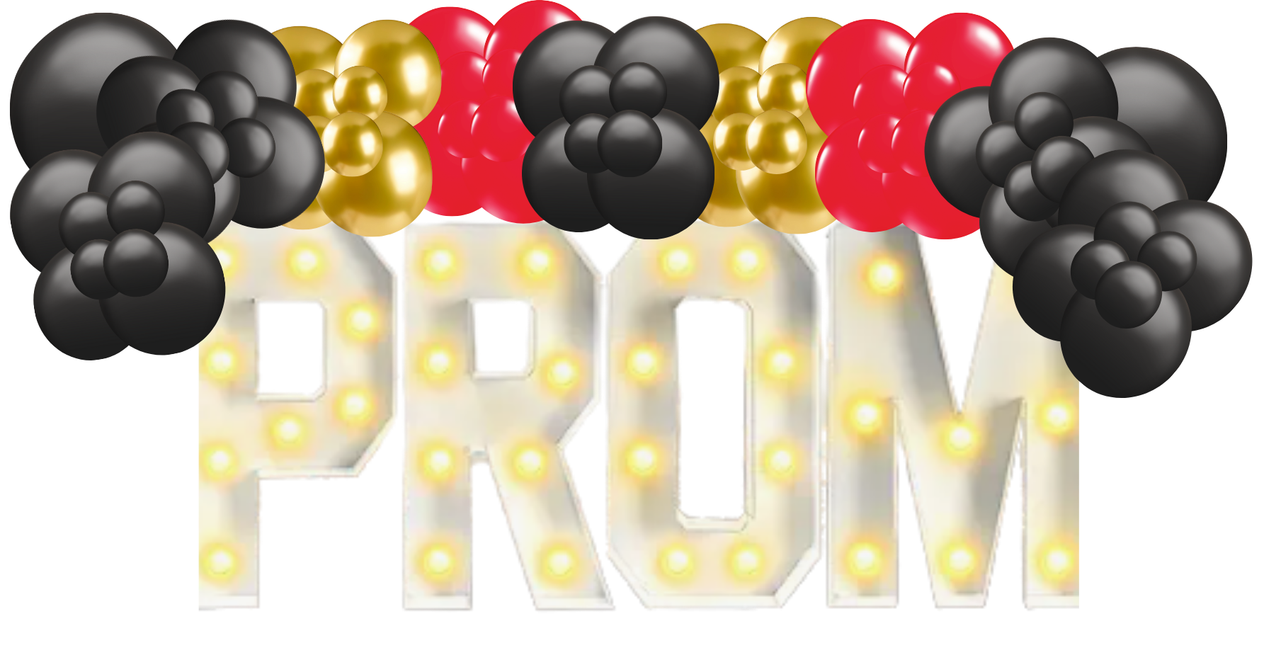 Light up your prom night with our stunning PROM marquee adorned with vibrant balloons! This eye-catching display features bold lettering that makes the perfect backdrop for photos, dance floor declarations, or grand entrance moments. The balloon arrangement adds festive flair and customizable color options to match your prom theme.